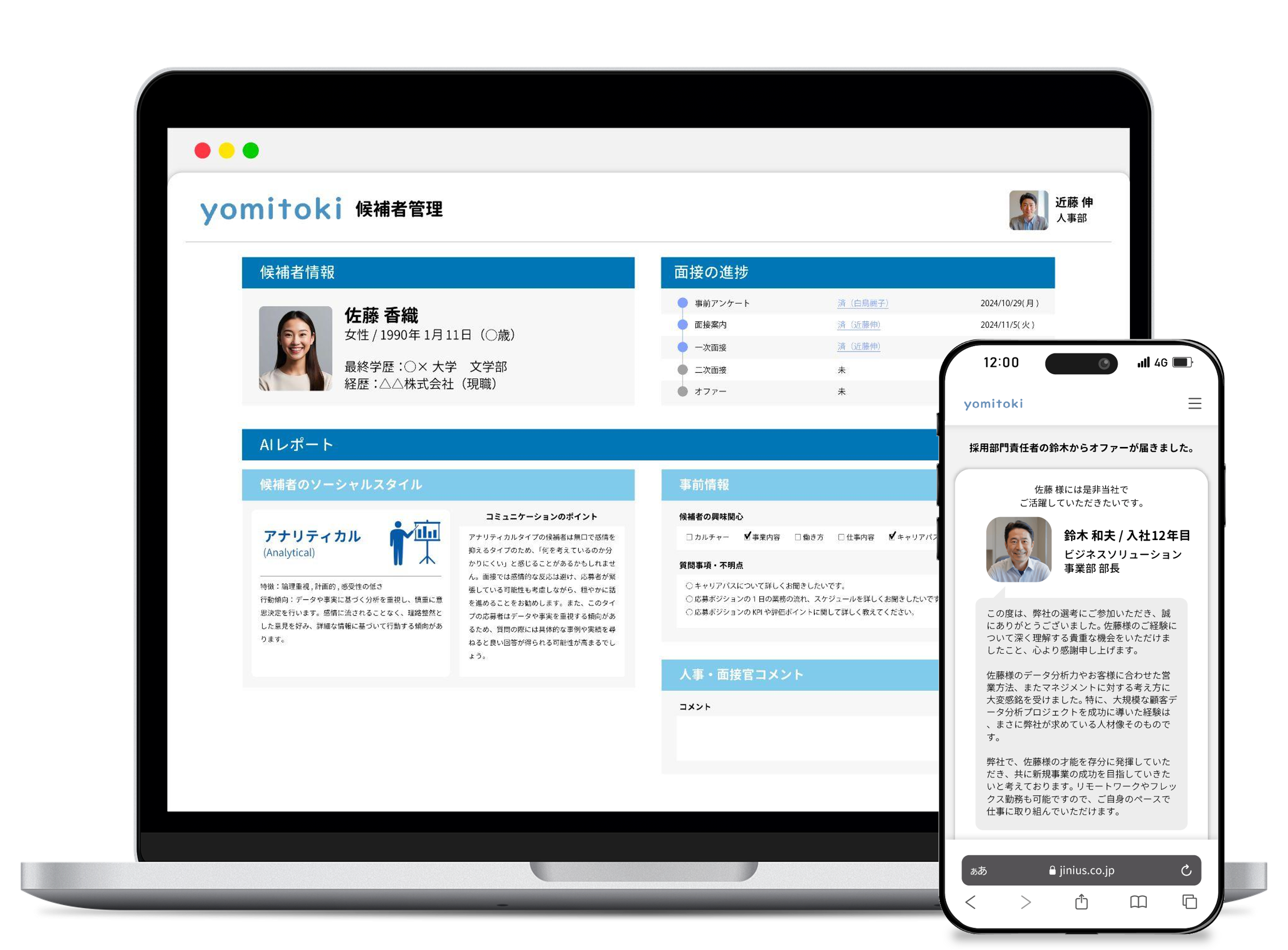 yomitokiを活用した結果、候補者一人ひとりに合わせたコミュニケーションを取ることが可能になり、辞退率は大幅に減少しました。非常に良い成果が得られたと実感しています。今後は蓄積したデータを分析し、さらに効率的かつ戦略的な採用活動を進めたいと考えています。