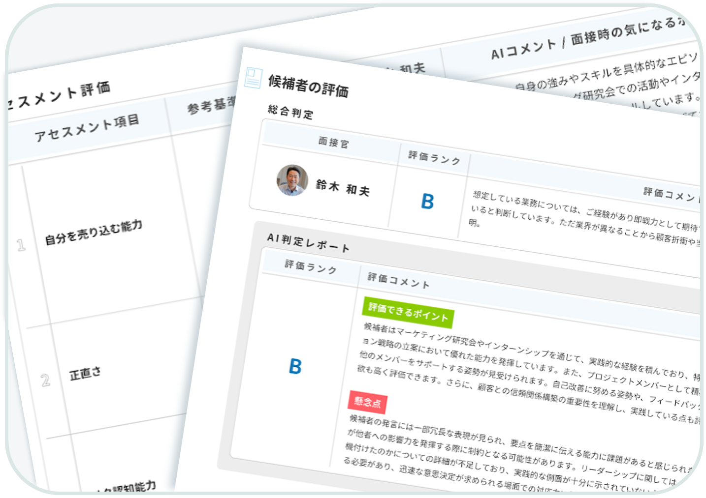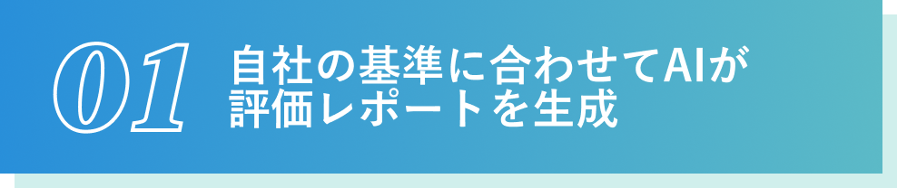 自社の人材要件を設定し、面接をするだけ。AI が面接中の候補者の発言を分析して、人材要件とのフィット度を判定。属人的判断を排除した客観的なレポートを作成します。